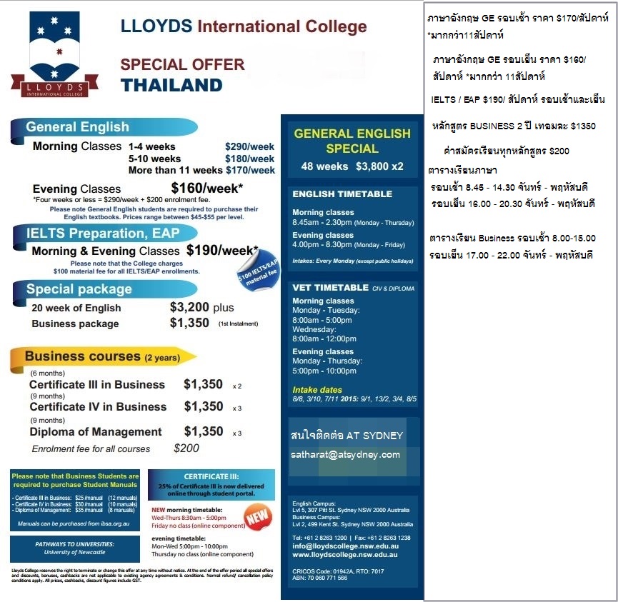 แพคเกจเรียนราคาพิเศษที่ออสเตรเลีย